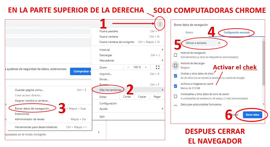 Desmarcamos Todos los campos dejando solo Cookies y Caché